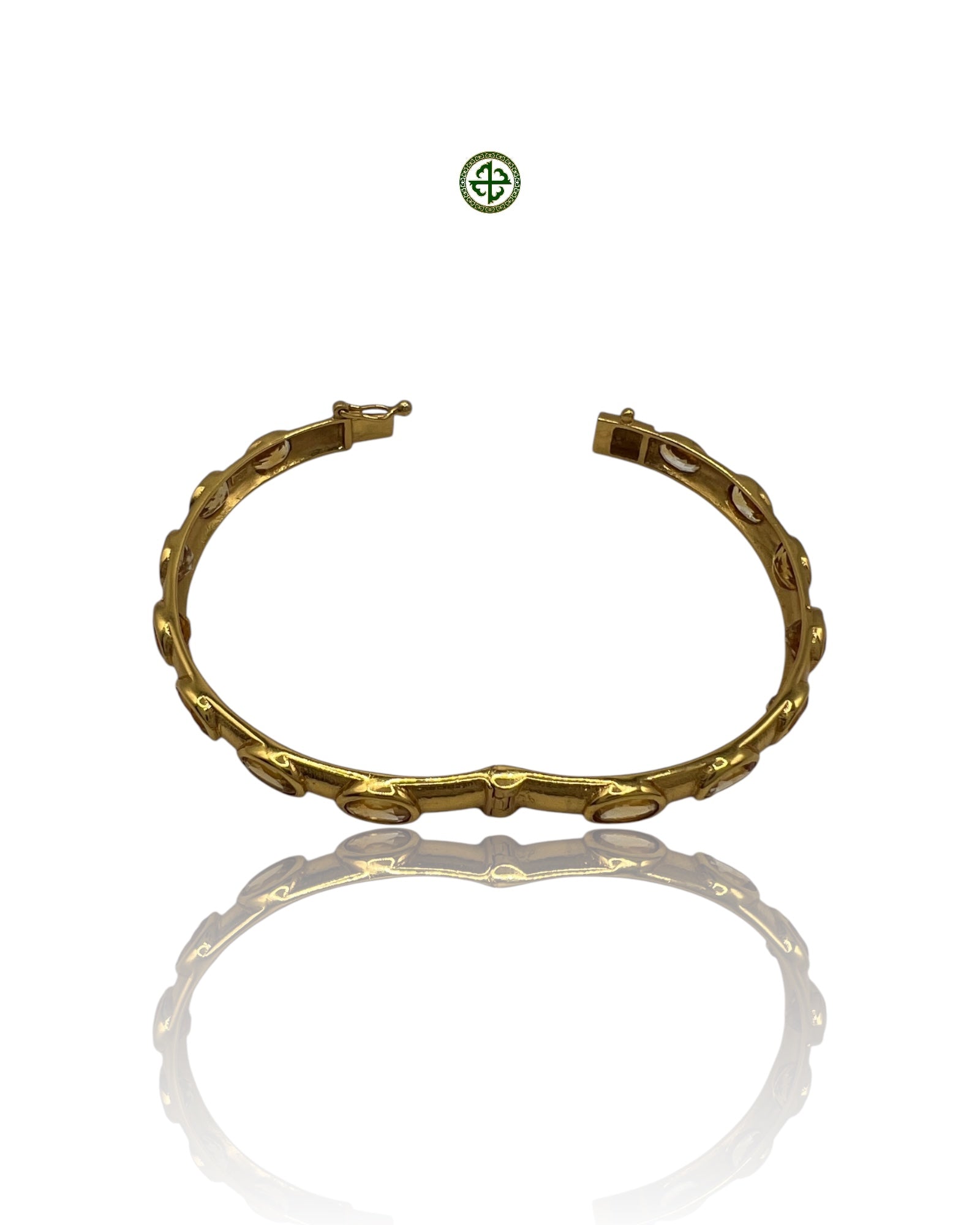 The Citrine Gold Vermeil Bracelet glows with joyful radiance and artisanal grace. Each golden-yellow citrine cabochon is bezel-set in sterling silver and enveloped in a luminous layer of gold vermeil. The result is a warm, sunlit composition that captures the beauty of light and life itself.
