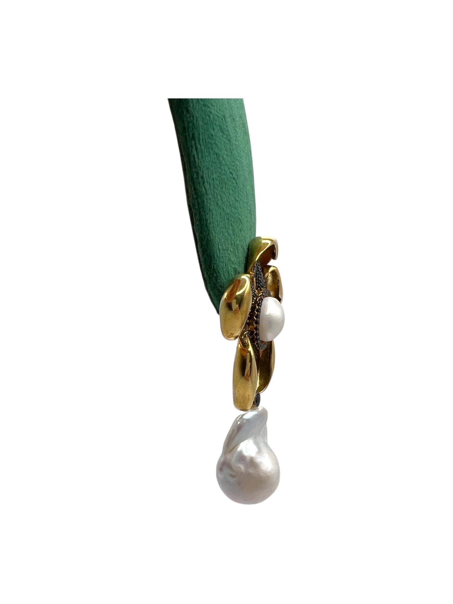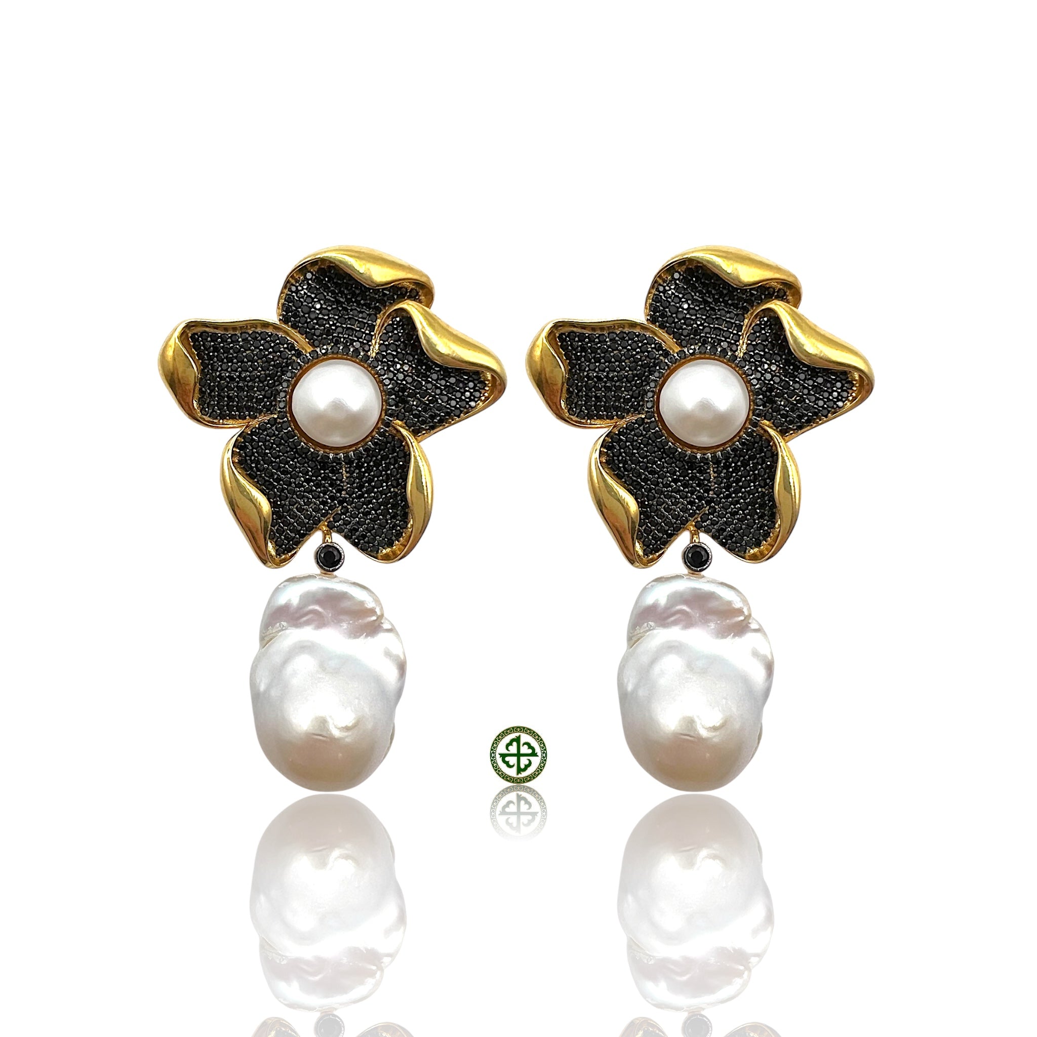 The Black Onyx Pearl Drop Earrings are a bold celebration of contrast, uniting the grounding depth of pavé-set black onyx with the luminous individuality of natural baroque pearls. Handcrafted with a thick layer of gold vermeil, these earrings carry both drama and timeless elegance. Black onyx is often said to symbolize resilience and protection, while baroque pearls are linked with individuality and purity, together they create a piece that is as meaningful as it is captivating. Ideal for weddings, refined evenings, or as a treasured gift, these statement earrings remain a customer favourite.
