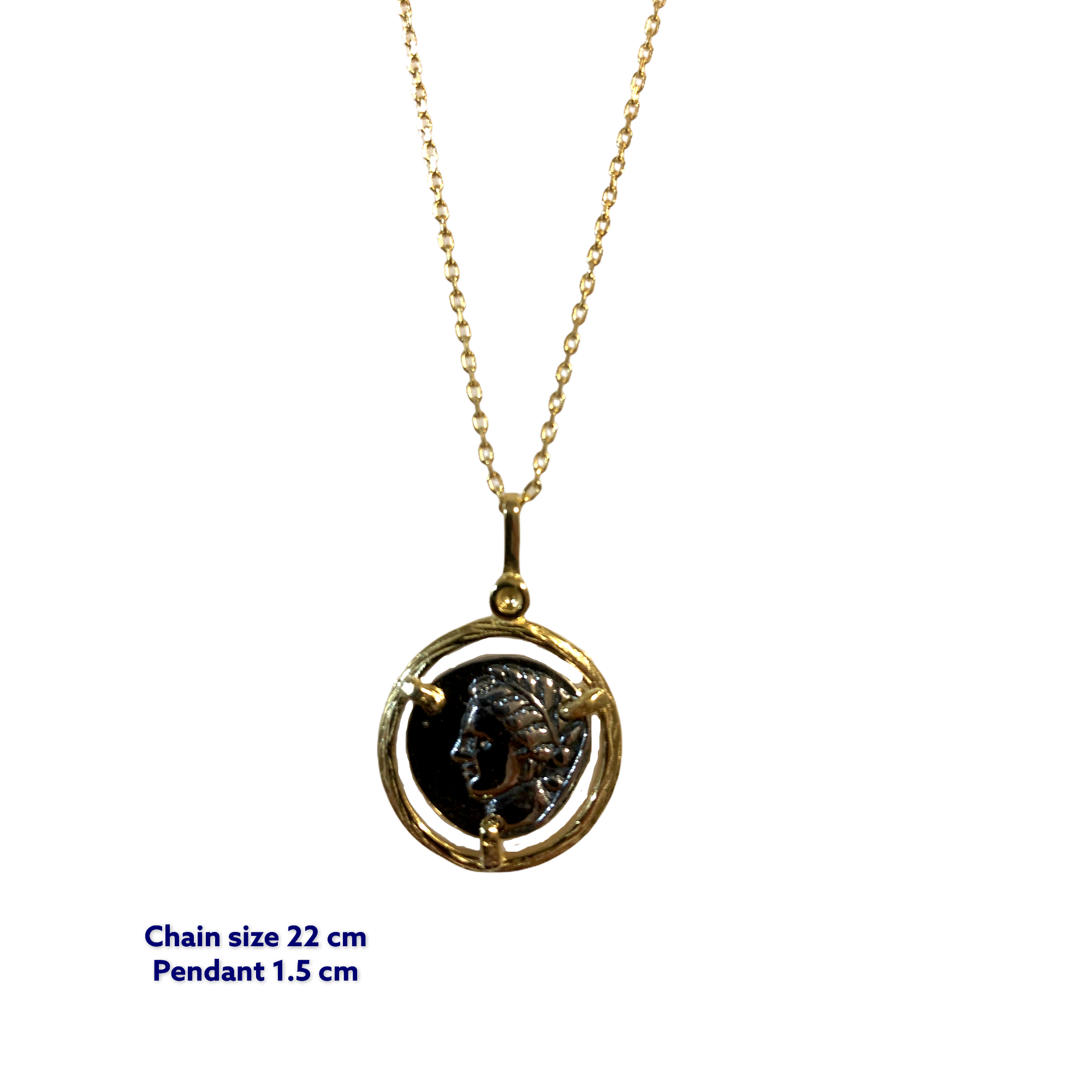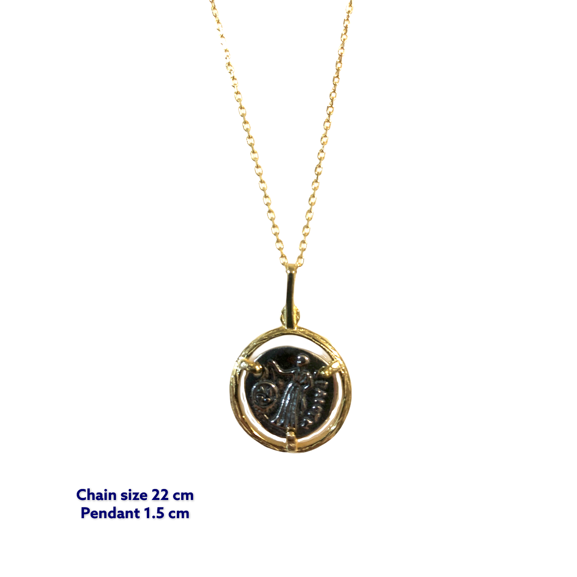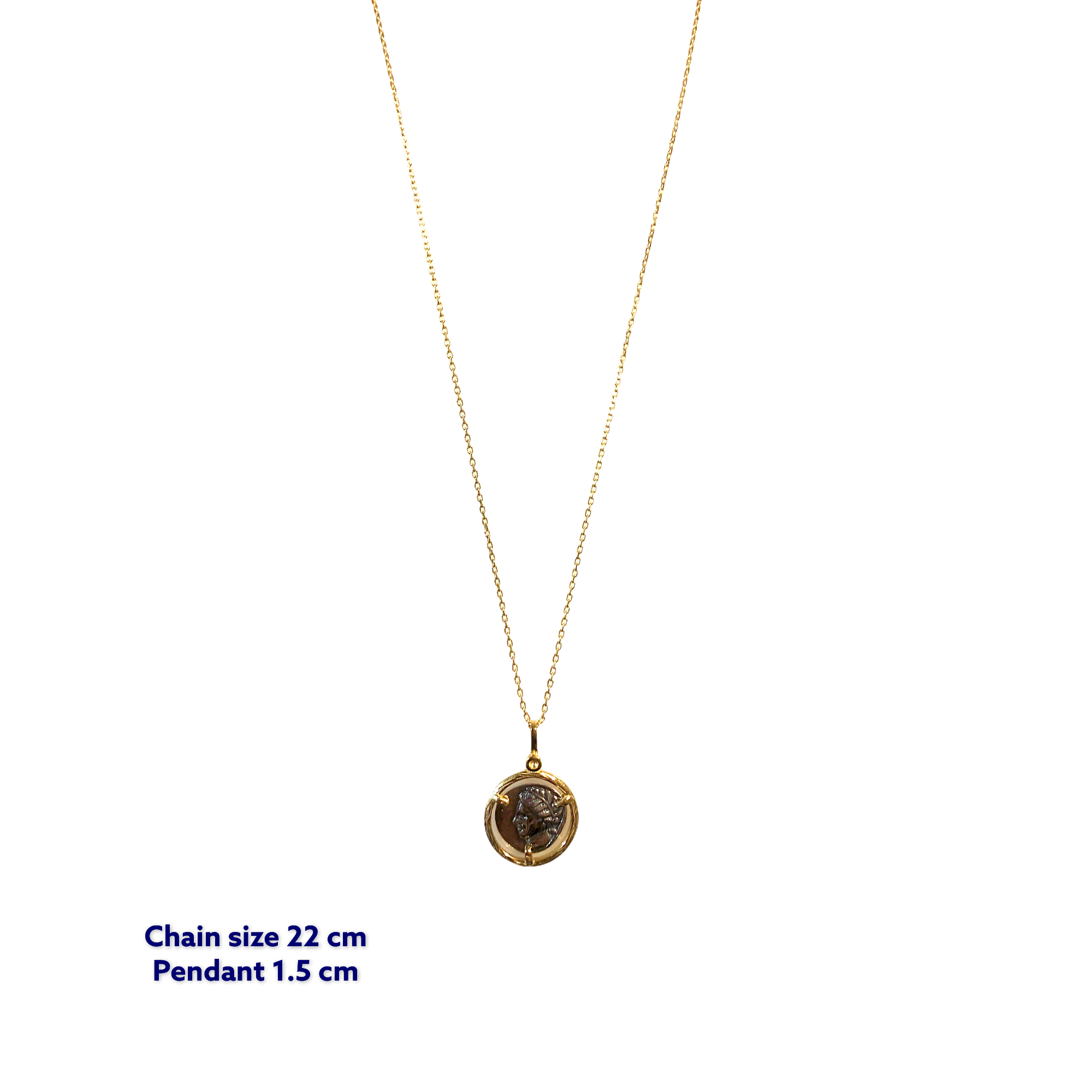 The Brave Gold Coin Necklace celebrates courage and timeless refinement, inspired by the power and artistry of ancient Roman design. Handcrafted from solid sterling silver and plated with radiant 22K gold vermeil, it features an engraved coin pendant that evokes strength, heritage, and individuality. Its sleek golden finish and detailed craftsmanship create a look that is bold yet sophisticated, perfect for everyday wear or as a meaningful keepsake of resilience and grace.