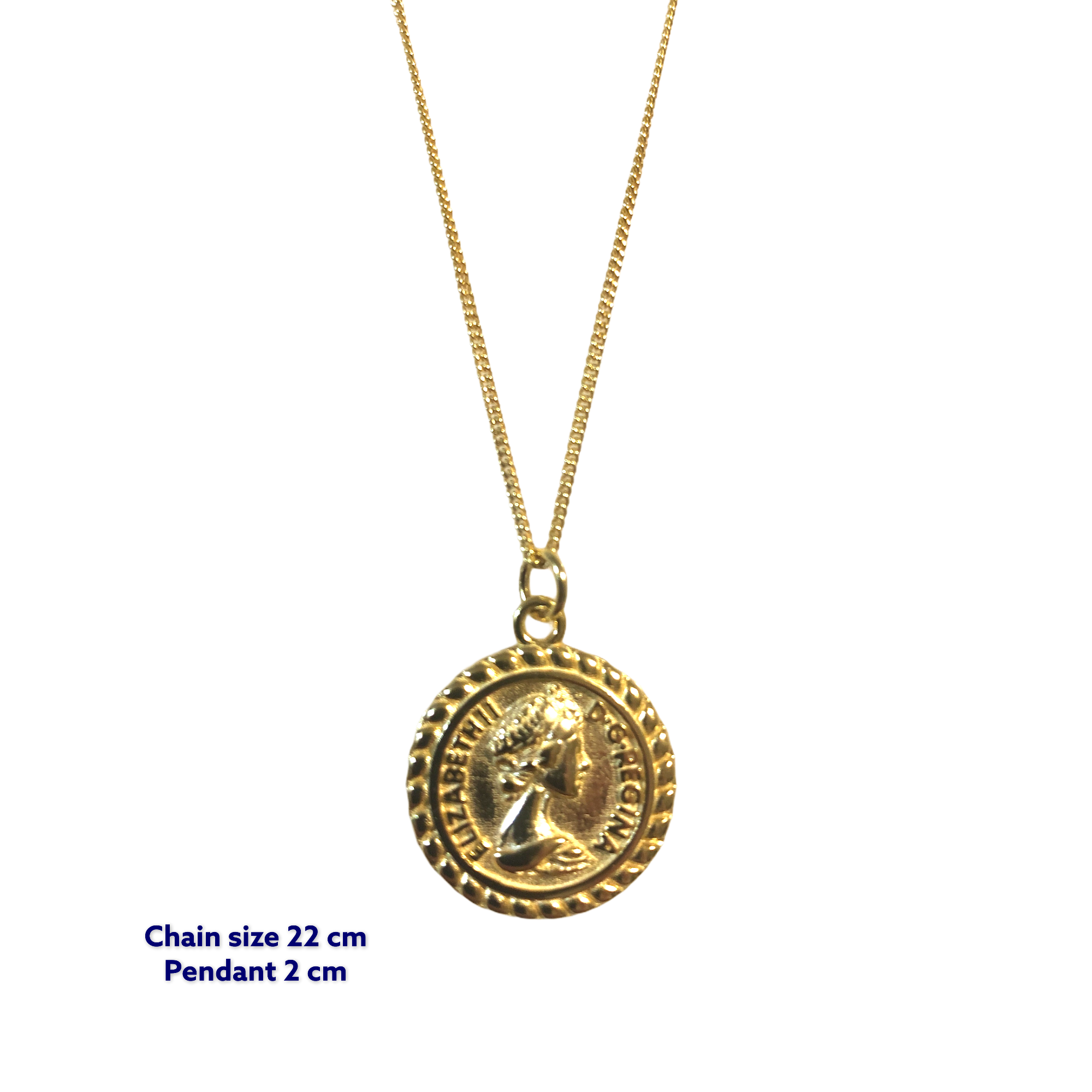 The Elizabeth II 1901 Gold Coin Necklace captures the regal spirit of British heritage through a timeless design that blends history and elegance. Featuring a re-strike of the 2015 sovereign coin depicting Queen Elizabeth II and the legendary Saint George and the Dragon, this pendant tells a story of strength and legacy. Handcrafted in sterling silver and plated in radiant 22K gold vermeil, it’s a refined emblem of classic style, sophisticated alone, striking when layered.