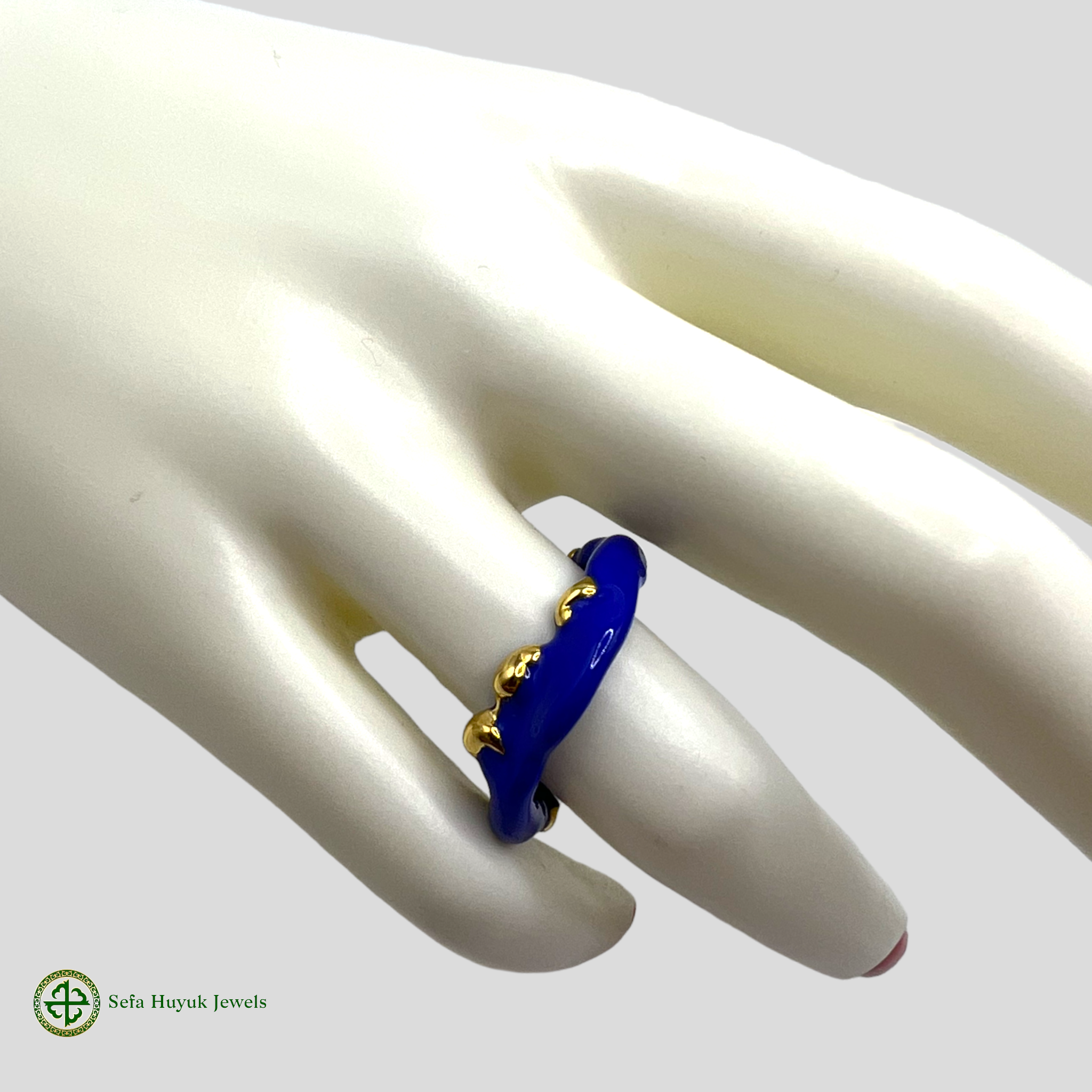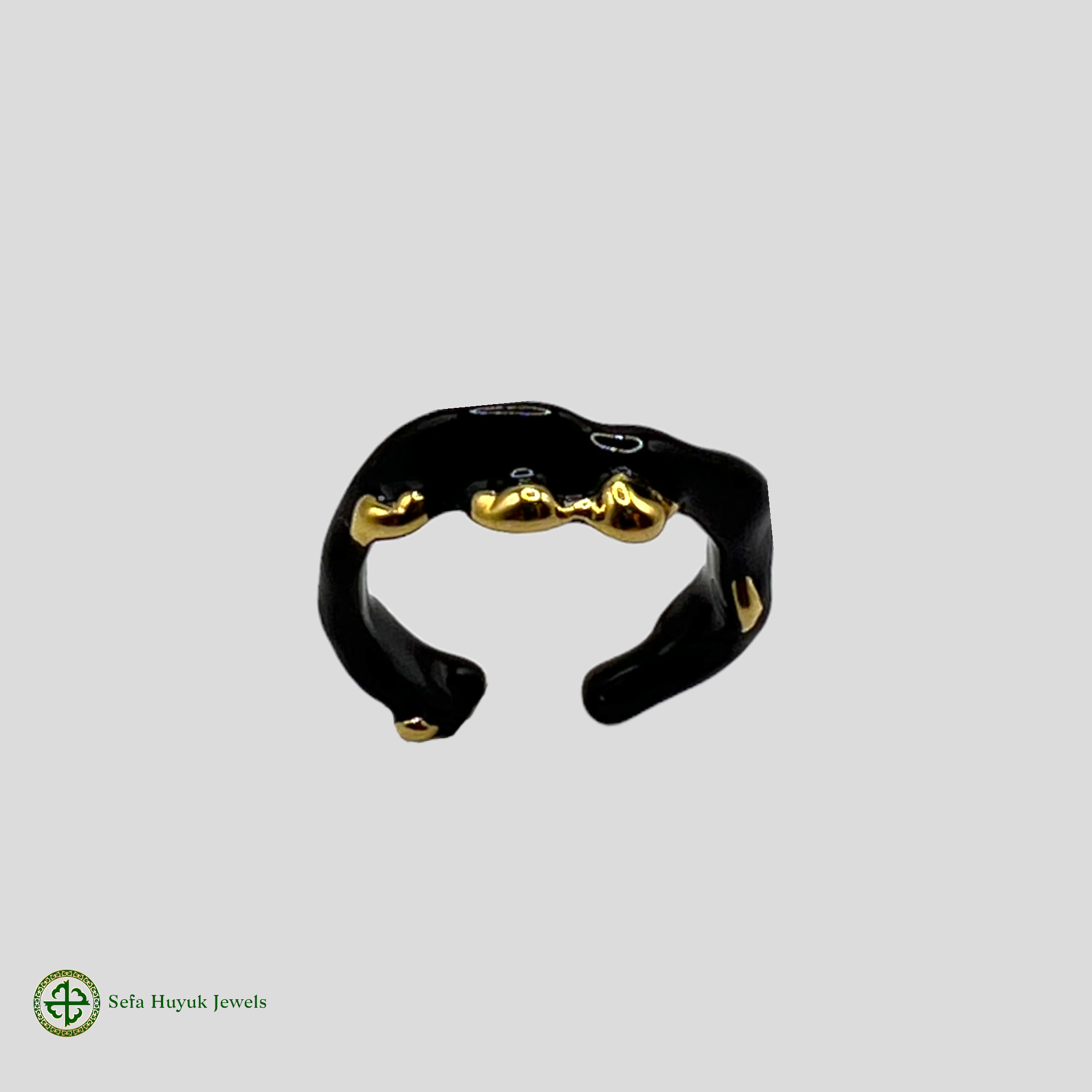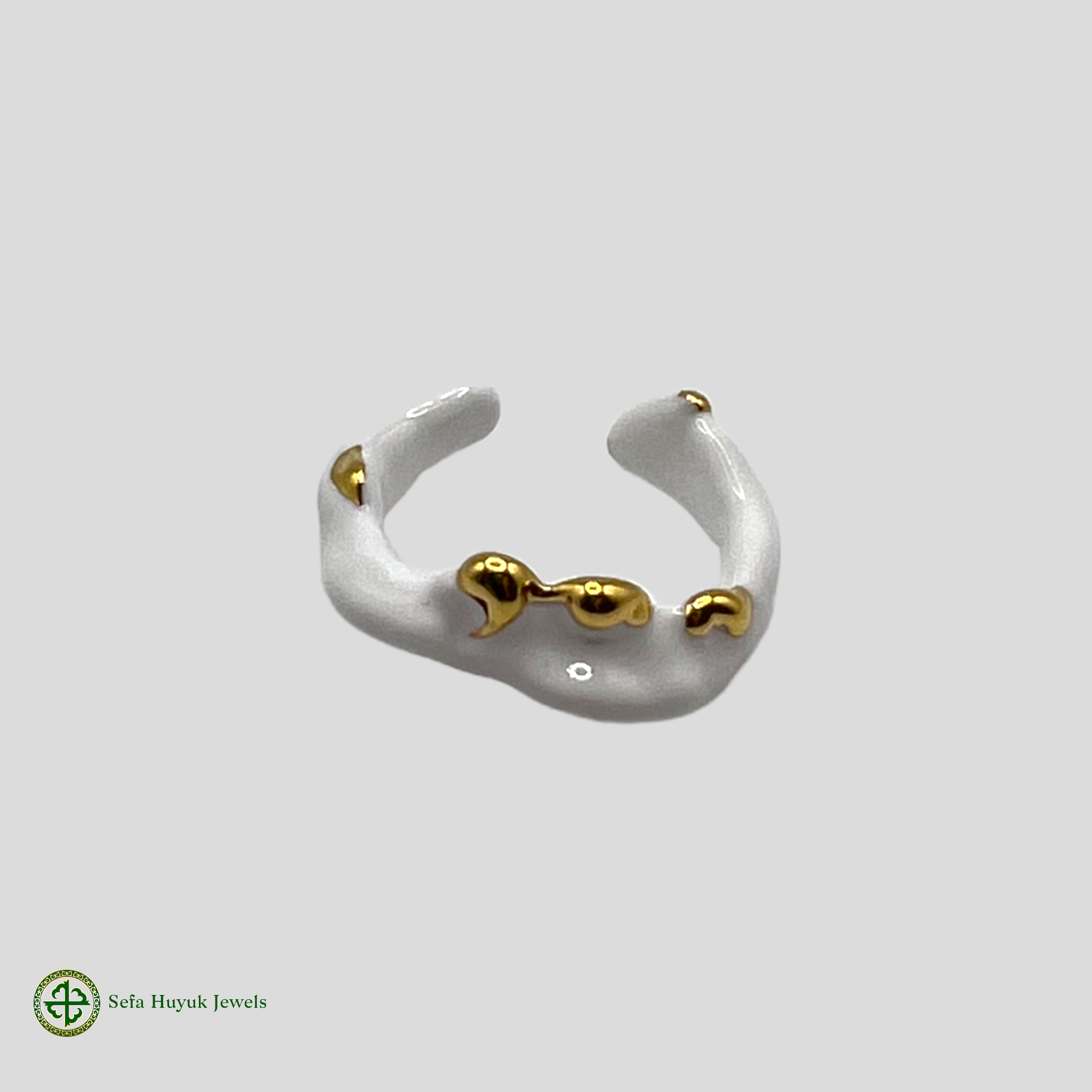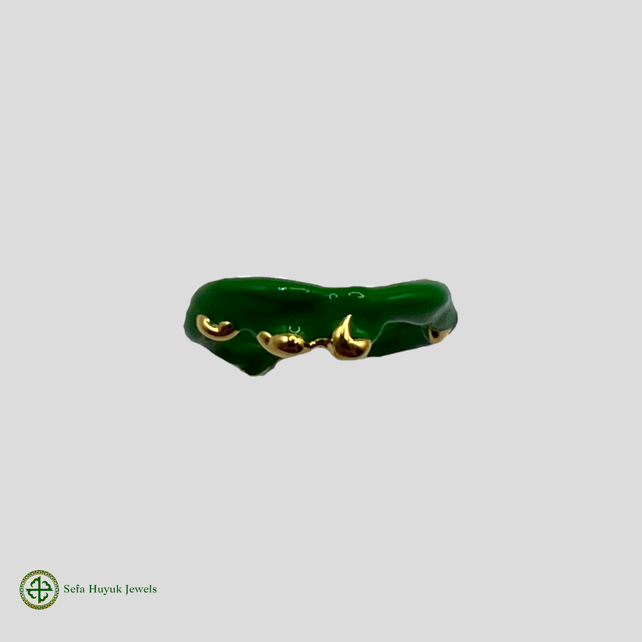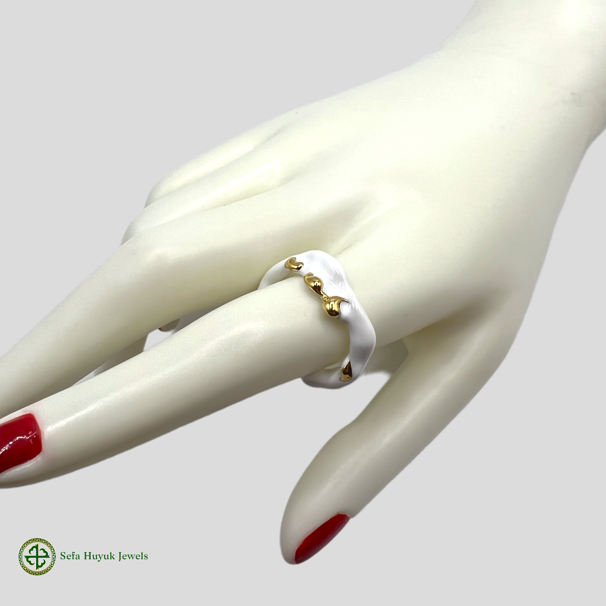 The Enamel Matilda Ring embodies modern sophistication through its sleek, multicolour enamel finish. Handcrafted in durable steel and plated with 18K gold vermeil, this piece balances boldness and elegance in perfect harmony. The dual-tone enamel bands in shades of white, green, black, blue, and pink, create a striking visual rhythm that elevates any look from casual to refined.