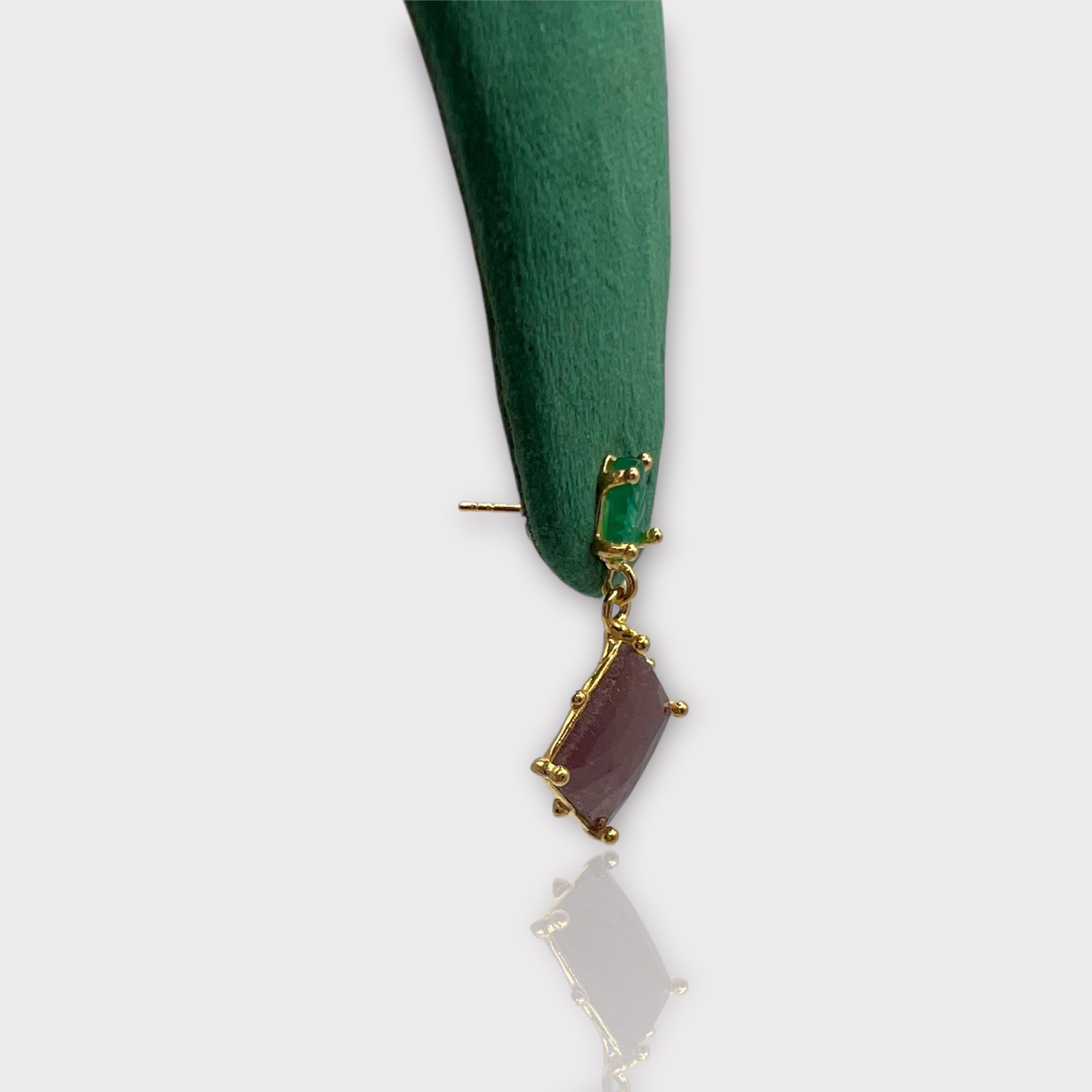 Crafted in glowing gold vermeil, these Green Onyx and Indian Sapphire Drop Earrings capture the allure of vivid gemstones with a refined silhouette. The deep green hue of onyx, often said to symbolize grounding and strength, pairs beautifully with the rich blue of Indian sapphire, linked with wisdom and truth. Together, they create a striking balance of color and meaning. Lightweight yet captivating, this design transitions seamlessly from everyday elegance to evening glamour.
