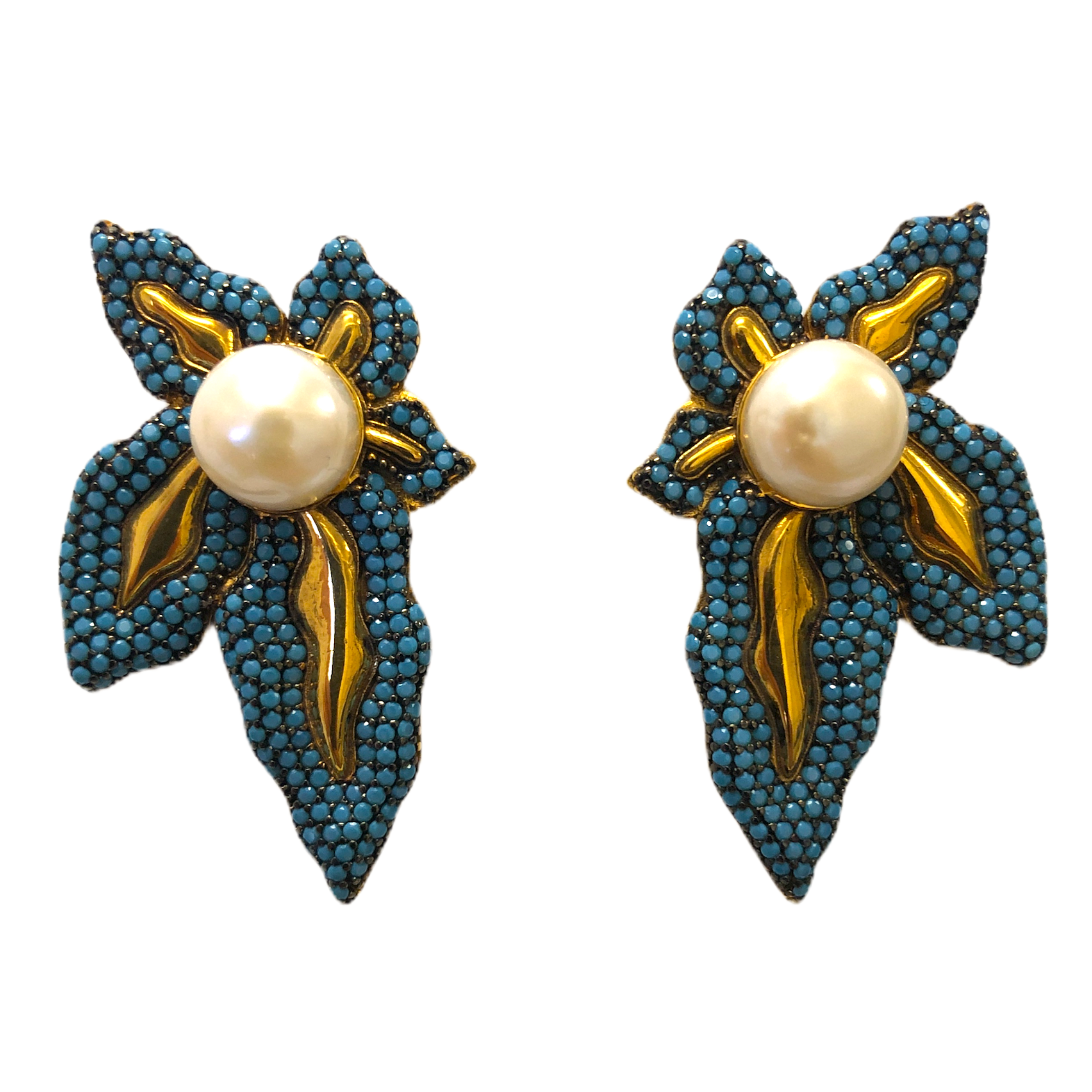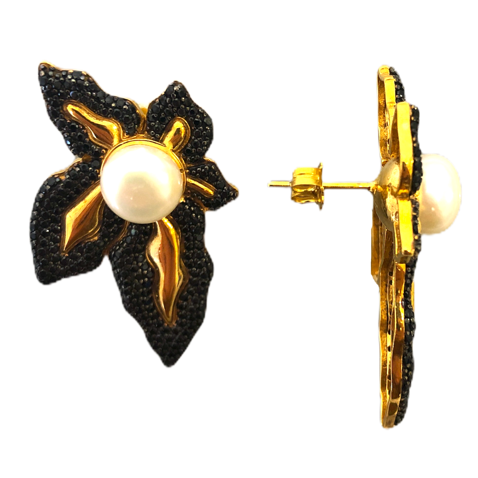 The Mari Pearl Leaf Earrings capture the poetry of molten gold shaped into flowing leaves. At their heart rests a luminous freshwater pearl, evoking purity and timeless grace. A deep red garnet glimmers above, while asymmetrically placed zirconias scatter light with theatrical brilliance. This dance of symmetry and surprise creates a pair of earrings that feel alive with movement and drama, making them perfect for occasions that call for elegance with an edge.