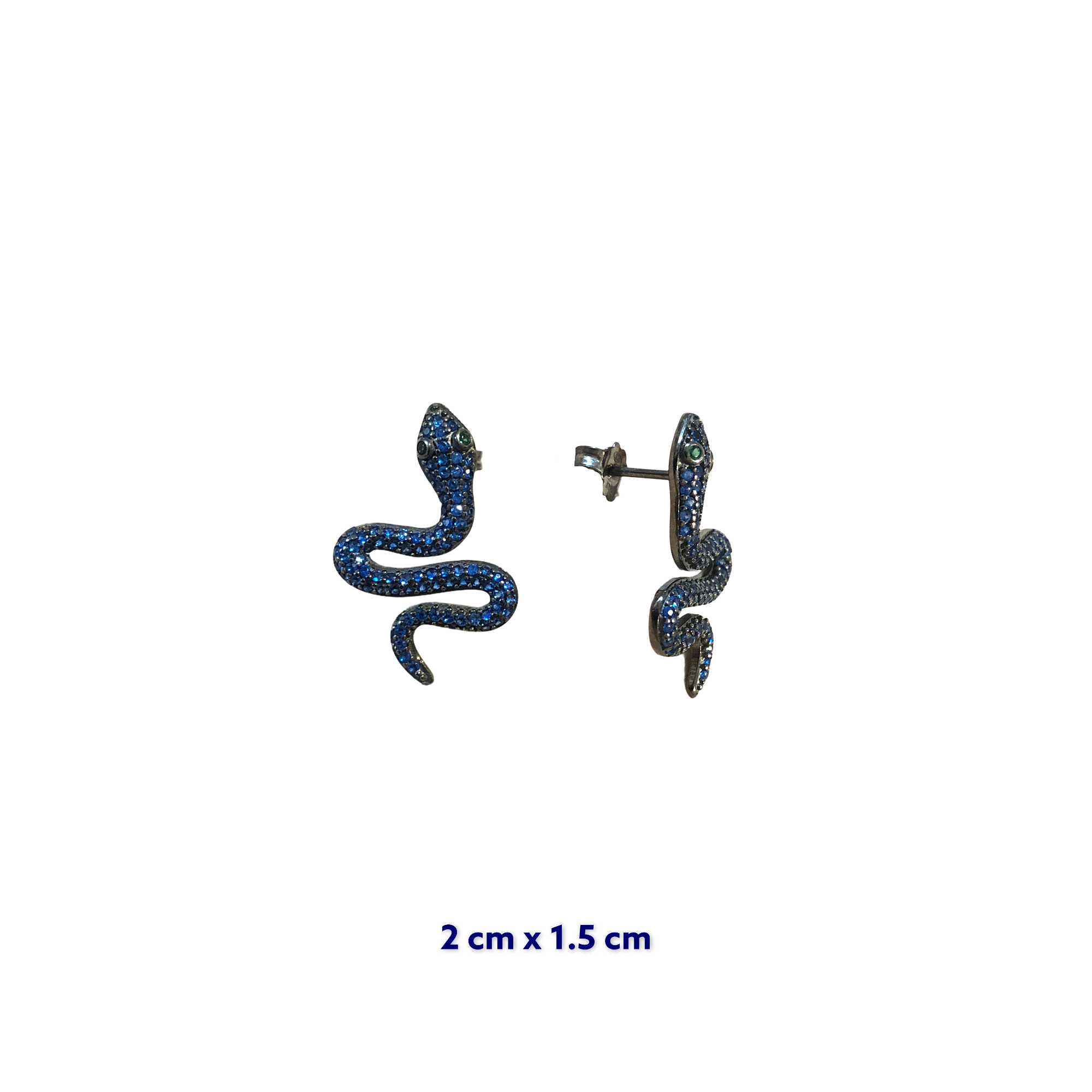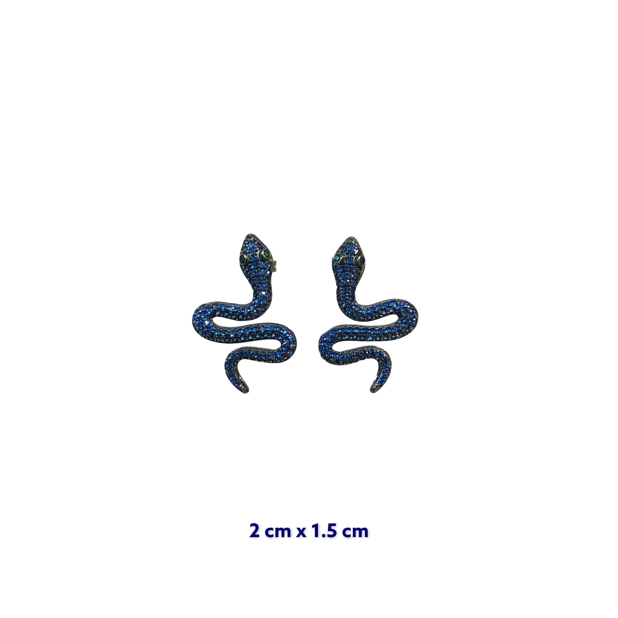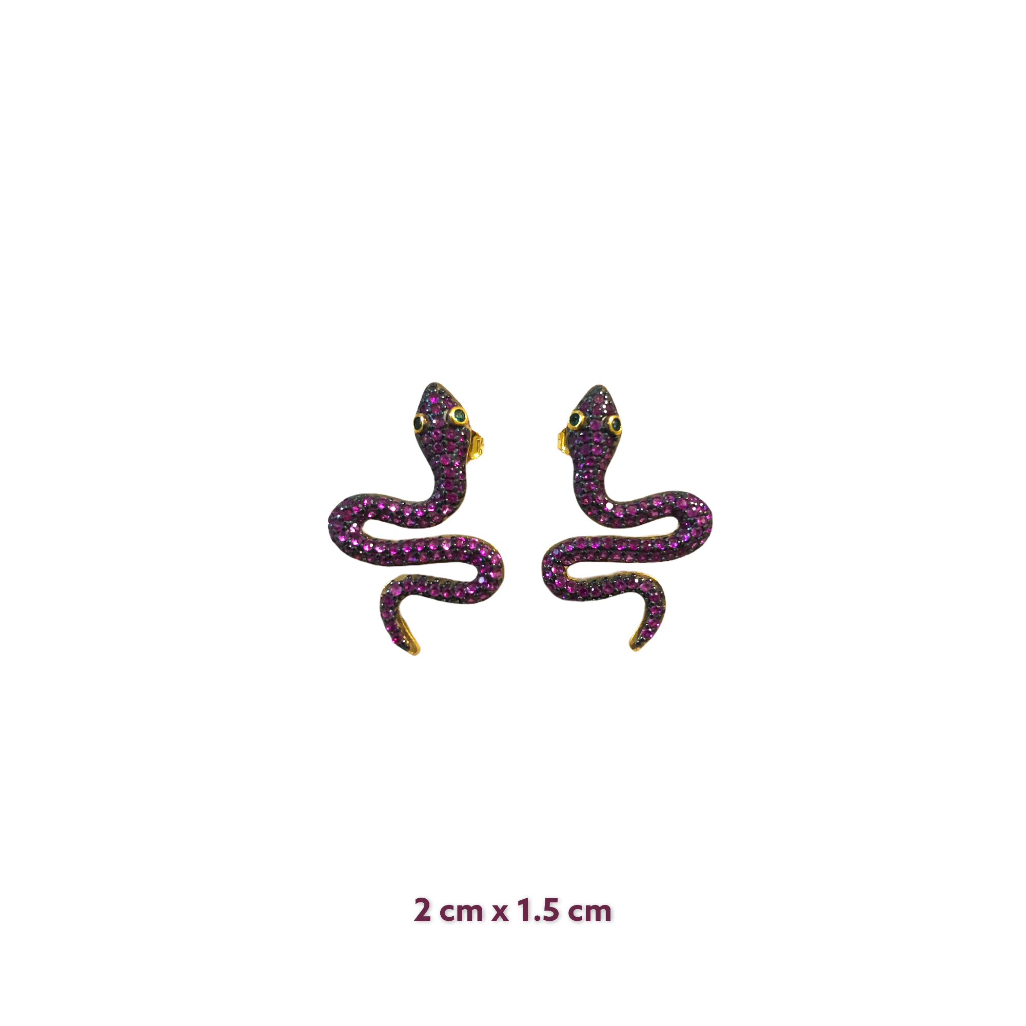 The Mini Snake Earrings embody mystique and contrast, where serpentine curves meet the sparkle of clustered zirconias. Each earring is crafted with black rhodium for depth and edge, offset by luminous 18K gold vermeil that brings warmth and balance. The snake, a timeless symbol of transformation and renewal, is reimagined here in miniature form, dazzling with vibrant stones that catch the light at every turn. Compact yet captivating, they are a striking choice for both everyday intrigue and evening glamour.
