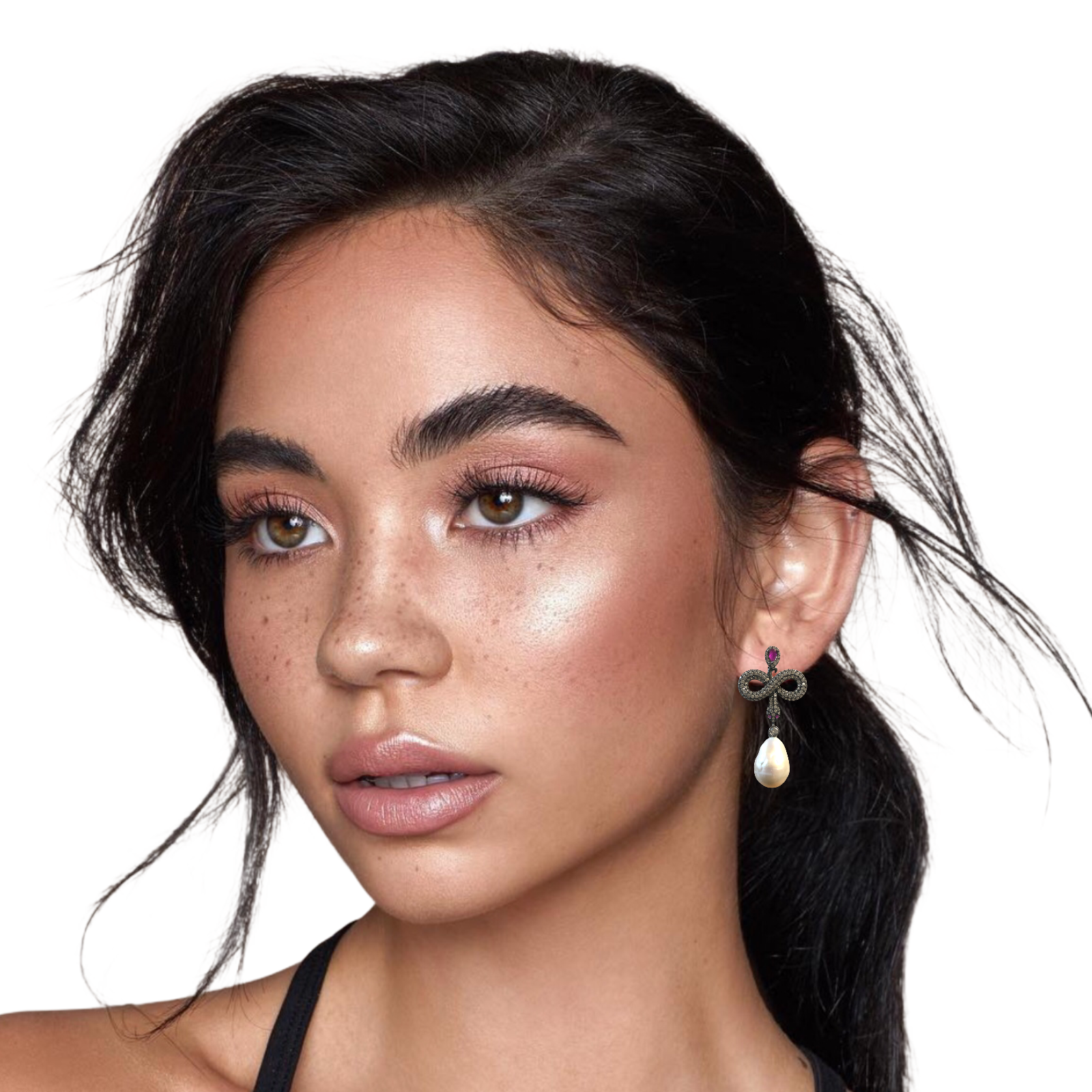 The Serpent Ruby Baroque Pearl Drop Earrings are a fusion of power, elegance, and artistry. Featuring a radiant AAA Grade ruby at the center, encircled by hand-set white zirconia in a delicate fluted pattern, these earrings exude royal allure. The design culminates in a luminous natural baroque pearl, symbolizing purity and individuality, each pearl unique in its organic form. A serpent-inspired silhouette adds depth and mystique, making this piece a statement of transformation and strength. Perfect for gala evenings, bridal styling, or as a meaningful luxury gift.