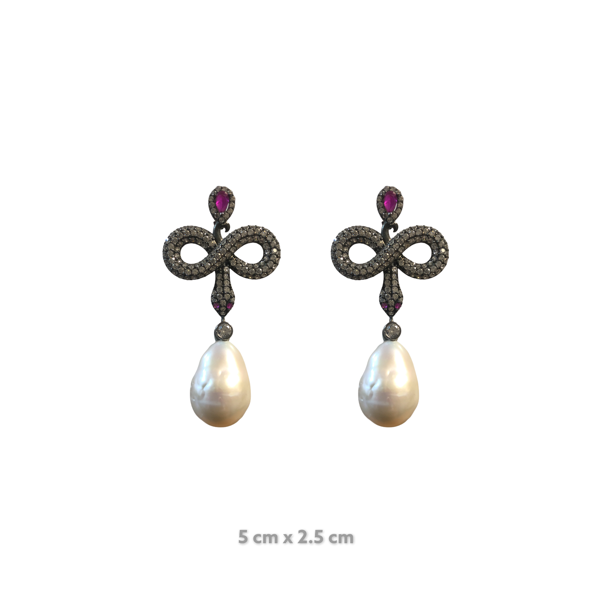 Stone: AAA Grade Ruby, Zirconia, Natural Baroque Pearl