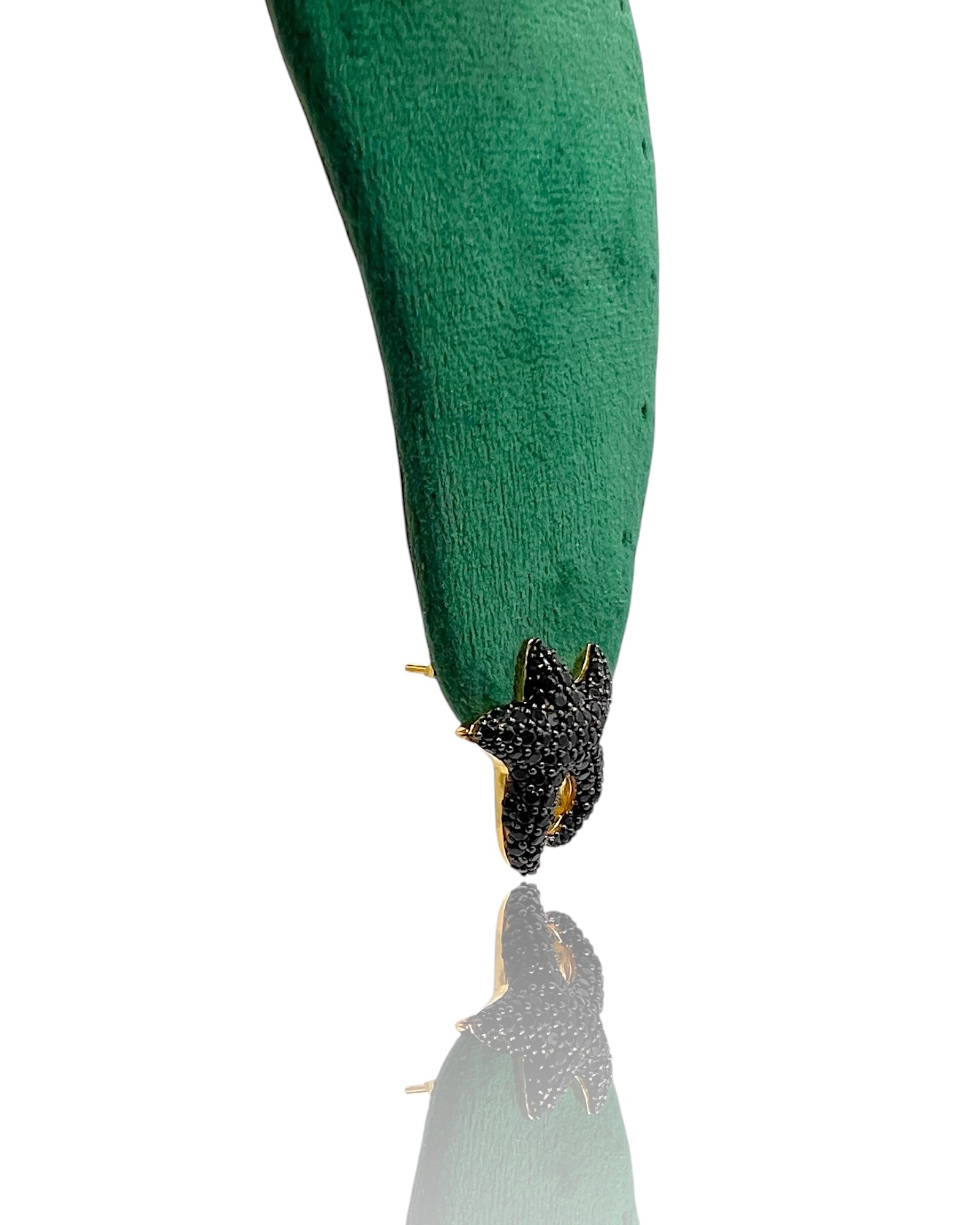 • Pavé-set black onyx starfish motif with symbolic resonance • 18k gold vermeil finish for richness and durability • Secure push-back fastening for comfortable wear • Lightweight, bold, and versatile for daily or evening looks