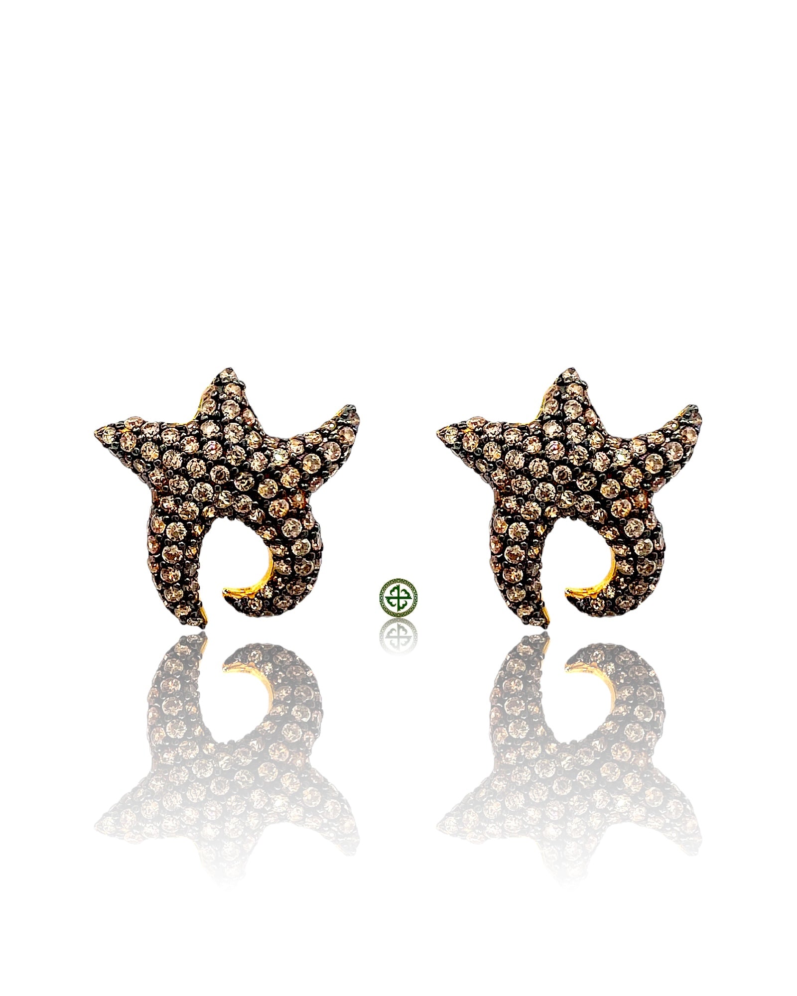 The Champagne Starfish Earrings shimmer with a warm pavé sparkle, crafted in luminous 18k gold vermeil. Their sculptural starfish design channels seaside elegance while the champagne tones evoke sophistication and harmony. A perfect balance of playful charm and refined luxury, these earrings elevate daytime styling and transition seamlessly into evening wear. Inspired by ocean forms yet crafted with couture artistry, they are a radiant summer essential.