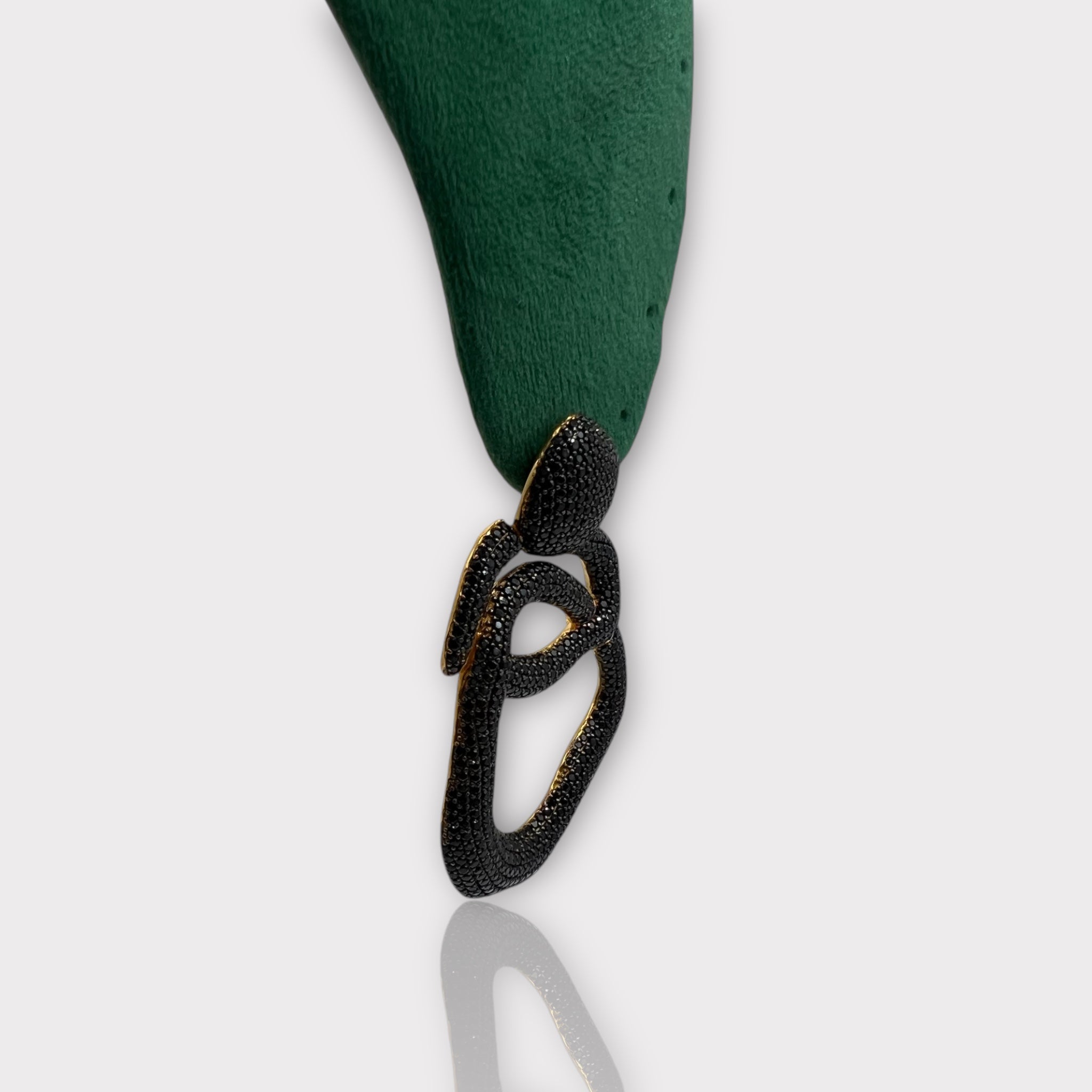 The Black Pavé Statement Earrings are designed for striking elegance and modern sophistication. Featuring AAA-quality black zirconia and CZ diamond accents, they combine bold scale with refined detail. Their long dangle silhouette moves gracefully, making them a standout accessory for formal occasions, bridal styling, or as a luxurious gift. Black zirconia is often associated with depth and resilience, bringing symbolic strength to their dazzling presence. Handcrafted in a thick layer of gold vermeil, these earrings balance drama with timeless beauty.